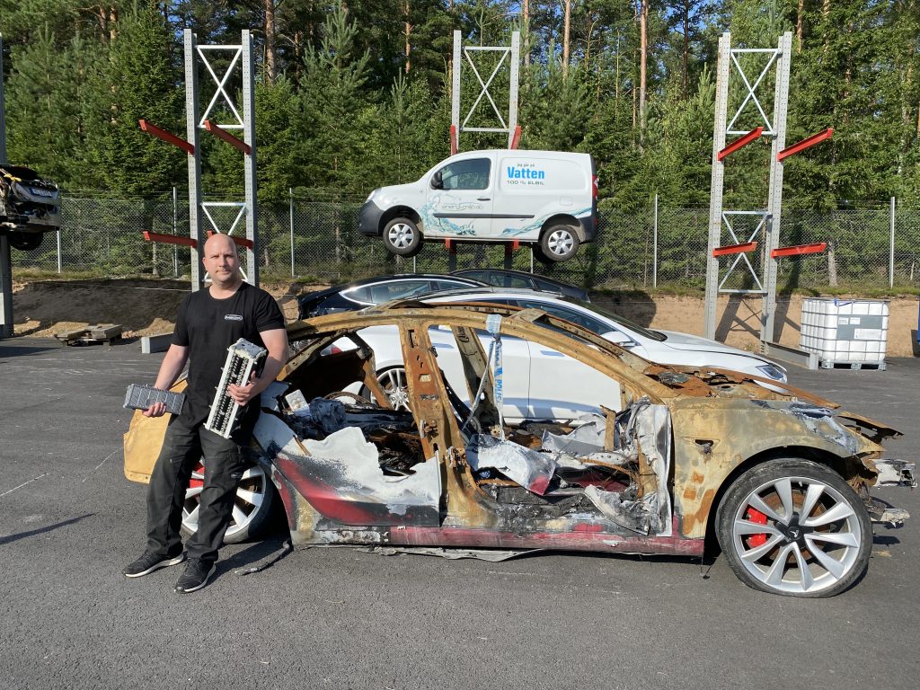 Christian Johansson jobbar mycket med att ta fram säkra rutiner för arbetet vid demonteringen. Han ger också egna informastionsträffar och ordnar studiebesök för verkstadsägare, försäkringsbolag, blåljuspersonal och bärgare i syfte att lära dem mer om elbilarnas förutsättningar. För bärgare har särskilda rutiner tagits fram för hämtning av de krockade bilarna, berättar han.
