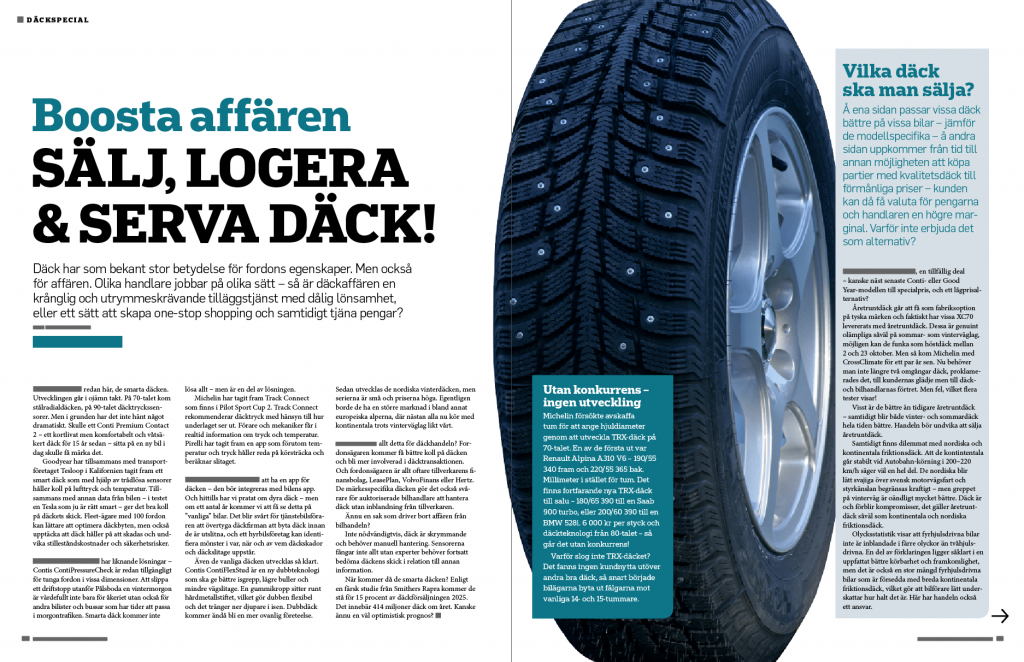 I tidningens marsnummer sätts strålkastarljuset på däckaffären. Så här resonerar Peter Möllhagen, däckansvarig på Berners som finns på fem norrländska orter, med däckservice i Sundsvall och Östersund och uppemot 13 000 sålda däck per år: