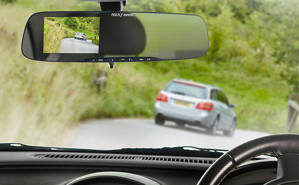Men nu har Nextbase tagit fram en smidig lösning. Deras ”Mirror Dash Cam” är helt platt och sätts fast på din backspegel med sugproppar.