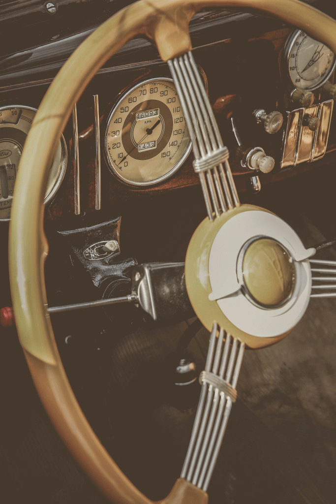 ”De tidiga rattarna var rigida ringar av trä, direkt kopplade till hjulaxeln. Att svänga var oerhört tungt, även om premiumversionernas läderöverdrag gav ett något bättre grepp.