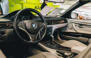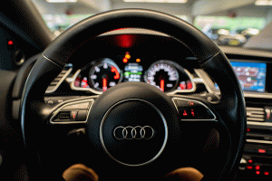 Högteknologiska reglagepaneler på moderna rattar.