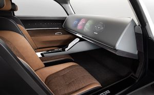 Den spännande modellen Moeye är designad för att se retro ut – men är elektrisk och självkörande. Den mest intressanta detaljen är den stora LCD-skärmen som ersätter instrumentbrädan.