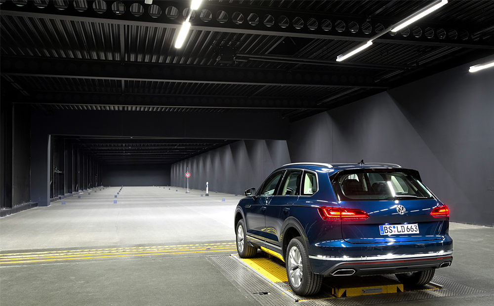 Den här tunneln ligger i Volkswagens forskningsavdelningen i deras Wolfsburgs-fabrik. I den nya anläggningen testar man bilarnas belysning i en miljö som liknar riktiga trafikförhållanden.