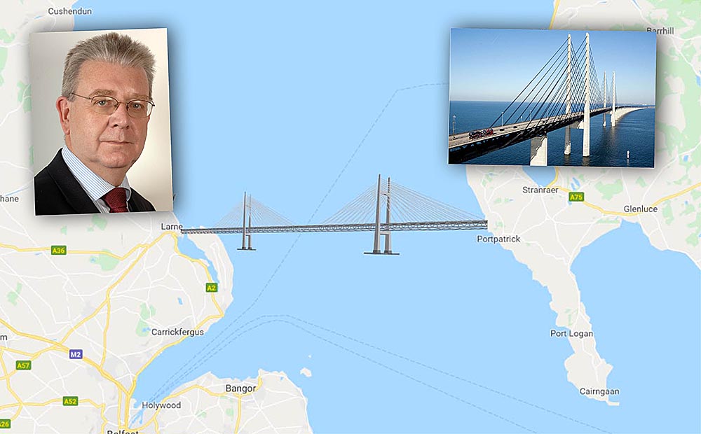 Snart kanske du kan sätta dig i bilen och köra raka vägen till Belfast eller Dublin i Irland – utan att behöva åka färja en enda meter. Den skotske ministern Mike Russell vill nu bygga en bro från sin hemtrakt över till Nordirland.