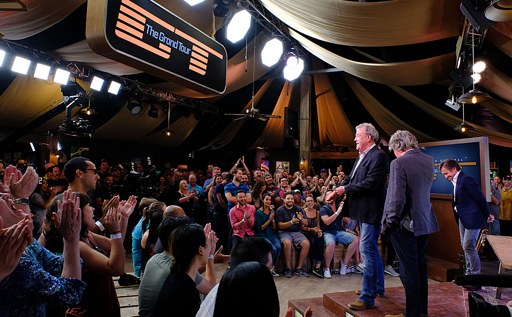 De tre programledarna Jeremy Clarkson, Richard Hammond och James May, har spelat in inför knökfulla tv-studios i mer än 17 år. Först med ”Top gear” och sedan med ”Grand tour”.