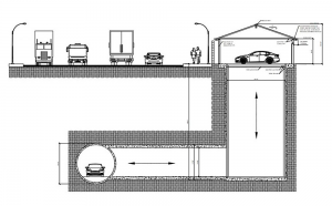 Hissen sitter i golvet på garaget och åker ned ett tiotal meter ner i underjorden. Där hamnar bilen på en släde som sedan kopplas ihop med höghastighetståget The Loop. Tåget gör ca 230 kmh och är en del i ett helt nytt transportsystem.