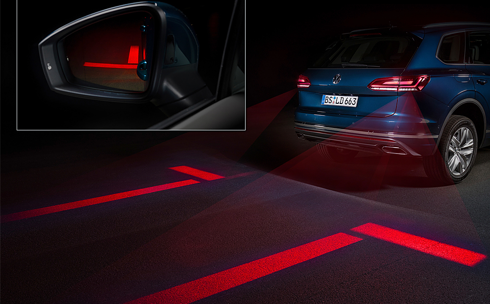 Några av de här funktionerna finns redan i nya modeller av Touareg. Bilen har en ”optisk fil-assistent” som med hjälp av ljusstrålar visar hur bred din bil är, något som är till stor hjälp när körbanor smalats av vid vägarbeten.