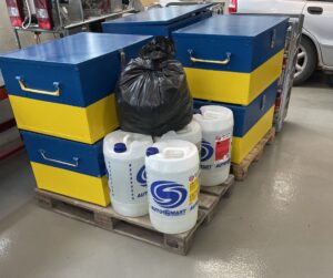 – Vi har stängt en avdelning hos oss och hade en del verktyg över, och på ett möte med motorbranschcollege berättade jag om min idé, att samla ihop verktyg och utrustning och skicka till verkstäder i Ukraina. Flera hakade på och bidrog och nu har vi 650 kg utrustning: handverktyg, maskiner, brandsläckare, avfettning, handskar och kläder. Verktygen är begagnade men allt fungerar. Eleverna på våra utbildningar har också varit delaktiga, de fick hjälpa till att måla stora trälådor i Ukrainas färger och nu är allt packat och klart.