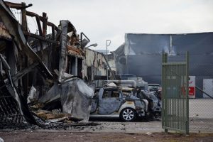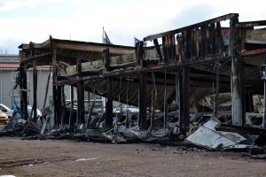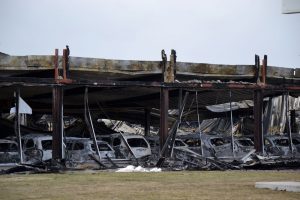 … hann vi i n t e få med i aprilnumret. Men vår reporter Pierre Eklund fångade den här bedrövliga synen 28 april då den våldsamma eldsvådan hade härjat hela natten i Smålands Motors anläggning och en intilliggande bilbesiktning. Uppemot 250 fordon strök med. Det enda som klarade sig var däckhotellet. Ett febrilt arbete pågår nu med omdirigering av jobb till andra anläggningar och systerföretaget Bilkompani Kalmar, som också ägs av familjen Linde, och hundratals andra problem som dyker upp efter en katastrof som denna. Vi hoppas få återkomma framdeles med deras erfarenheter.