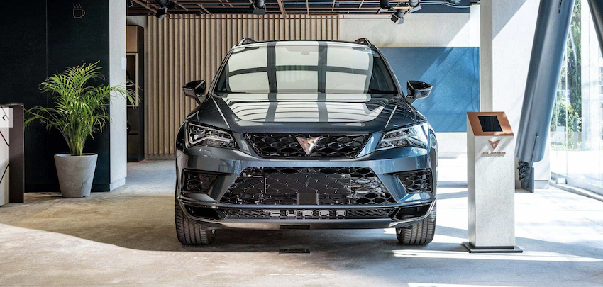 Här säljs förutom bilar även produkter som kläder och fritidsutrustning som ett led i en “Cupra-baserad” livsstil.