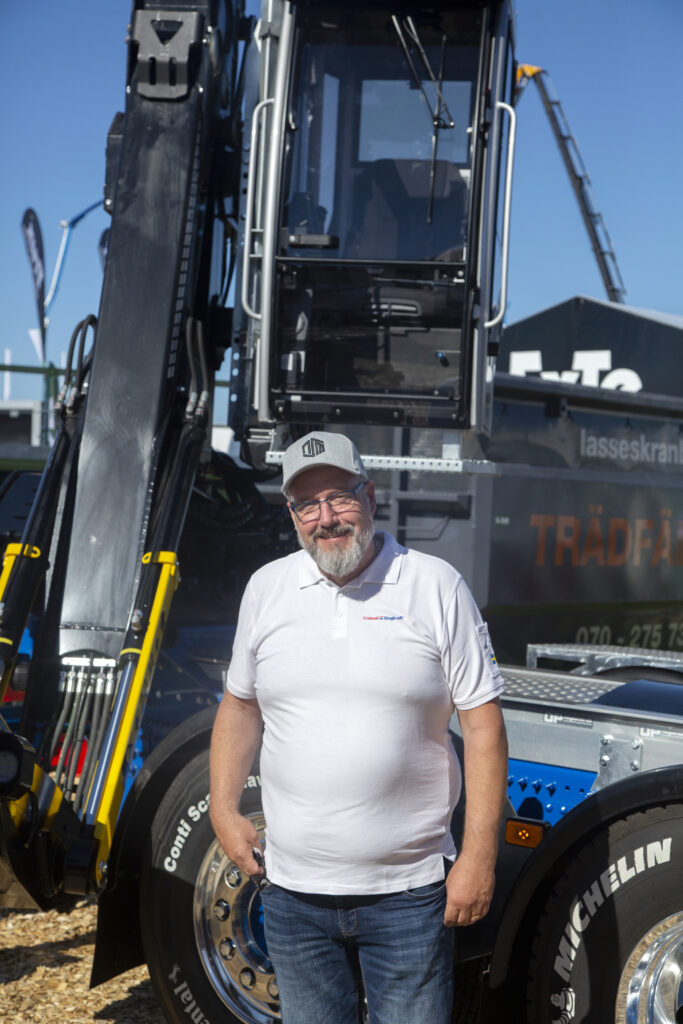 – Vi på firman jobbar med skogsavverkning och har komplett verkstadsservice för lastbilar, skogsmaskiner och tunga entreprenadmaskiner. Dessutom är vi lastbilspåbyggare. När någon köper en lastbil av en återförsäljare är det bara ett chassi man köper, som måste byggas på med något. Där kommer vi in i bilden. Återförsäljaren beställer jobbet av oss och jag och kunden diskuterar tillsammans vad som skall monteras på chassit. Skall det bli en timmerbil, dragbil, trailer eller tankbil? Vi kan montera på ramper, sandlådor, lysen, hydraulpumpar, kranar; allt man vill ha. Sedan skickar vi en offert.