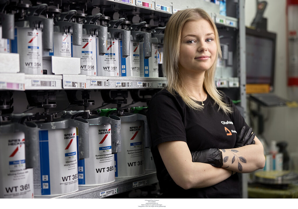 Hon trivs både med arbetet som lackerare och på företaget.