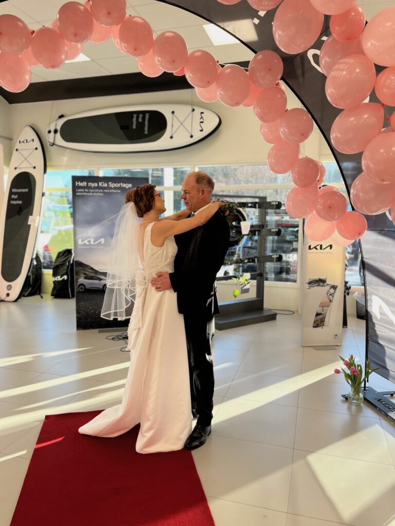 – Bröllopshelgen var en utveckling av en aktivitet vi gjorde i november. Då hade vi dejt-träff i bilhallen i Karlstad. Båda evenemangen har gjorts för ett kampanjändamål. Dejtträffen var en kampanj för laddbara begagnade Kia som sökte ny partner och bröllopet var för att vår Arvika-anläggning A-bilar ingick i Wafab bil från och med årsskiftet. Vi gifte ihop oss helt enkelt, och hade samtidigt en hel del erbjudanden på nya Kia och även begagnade Kia, som slog väl ut. Vi fick omkring 80 besökare och dagen var mycket uppskattad.