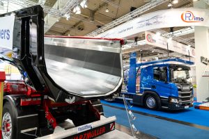 Jättelika hallar är fyllda med påbyggnader och släpvagnar som här anläggningstrailer och biltransportbil.
