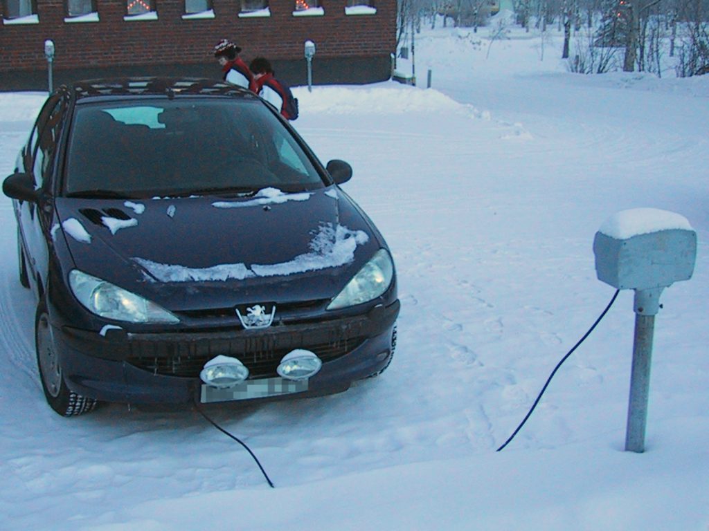 Motorvärmare bidrar till utsläpp. Här en eldriven värmare som är betydligt bättre än en bränsledriven. Foto Superbass
