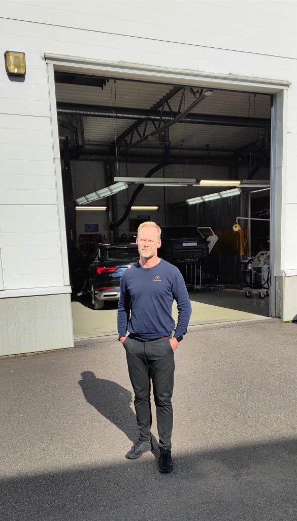 ”På ett möte med en tidigare regionchef på Volkswagen för ett par år sedan tog jag tog upp problemet. Vi stötte och blötte och funderade på om det gick att göra något. Han föreslog att vi skulle förbereda jobben på ett annat sätt. Vad skulle hända om vi redan vid skadebesiktningen skulle passa på att ta färgprover? Det görs med en speciell kamera och tar inte jättelång tid. Då skulle vi kunna ta fram rätt kulör och beställa hem färger innan bilen kommer in för åtgärder. Särskilt, menade han, skulle det vara smart när det gäller alla delar som går att skruva loss, som dörrar, stötfångare och bakluckor. Jag tyckte det lät smart och vi bestämde oss för att testa.”