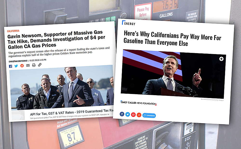 Det är inte bara här i Europa som invånarna protesterar mot höga bensinpriser. Nu är guvernören i Kalifornien i blåsväder. Först godkände han rekordhöjningar av både skatter och avgifter – nu låtsas han vara chockad över det höga bensinpriset.