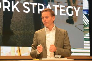 Andreas Renschler (bilden nedan) inledde Innovation Day 2019. Han är vd för Traton och har en solid lastbilsbakgrund från konkurrerande Daimler. Erfarenheter av att samordna fabrikat som Mercedes, Freightliner och Mitsubishi-Fuso har lärt honom mycket om integration av globala fordonsföretag. En stor utmaning har varit att skapa en bra atmosfär för samarbete mellan Tratongruppens varumärken och olika företagskulturer. Siktet är inställt på att bli en global jätte inom lastbilsvärlden.